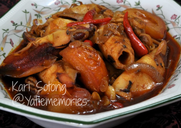 Assalamualaikum dan Salam Sejahtera semua. Hari ni masak ringkas je kari sotong. Walau kari sotong tapi rasanya sedap sangat. Biasanya saya suka masak kering2 je kalau sotong kari ni, kali ni berkuah sikit tapi jngn sampai cair sangatlah. Resepi ni mudah je, macam masak kari biasa ..cuma saya tambahkan sedikit madu, sos tiram dan kicap...wallaweiiiiiii enak banget. Kalau ada yg berkenan tu, bolehlah cuba. Jom semak resepi mudah ni.